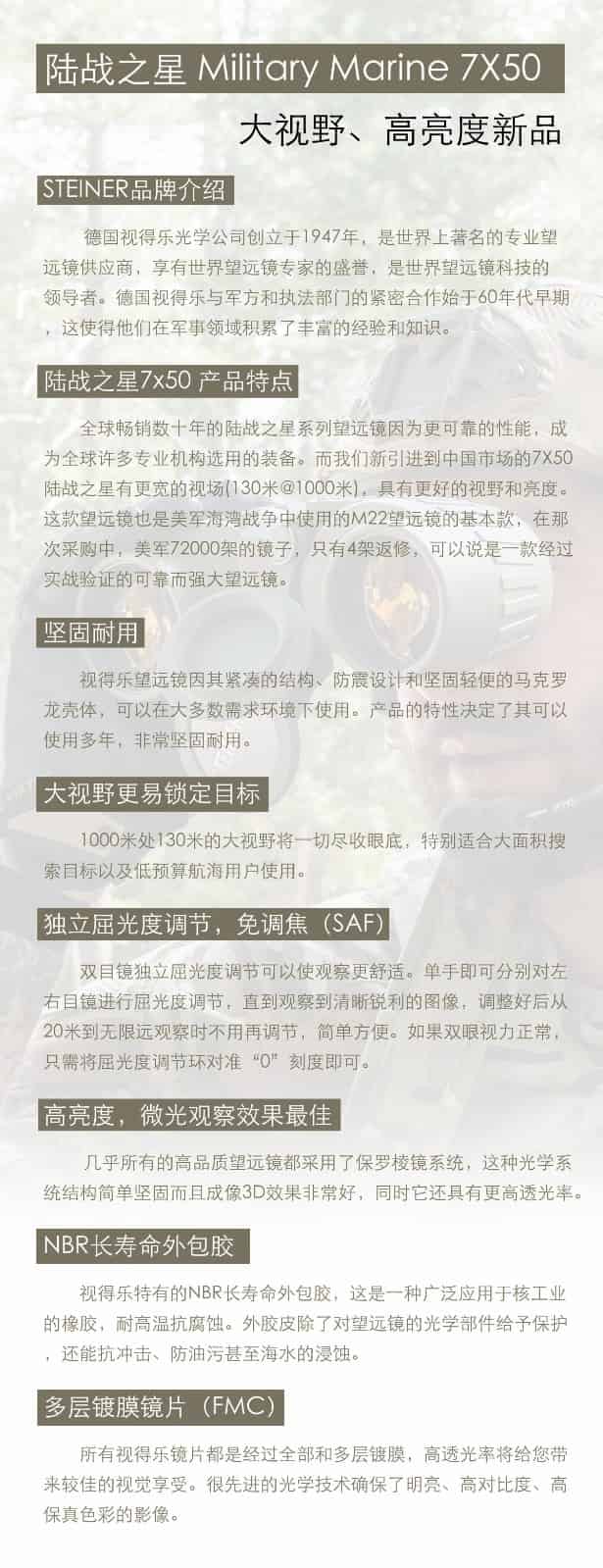 陆战之星7×50,进口德国STEINER视得乐望远镜,10年质保
