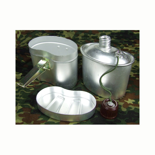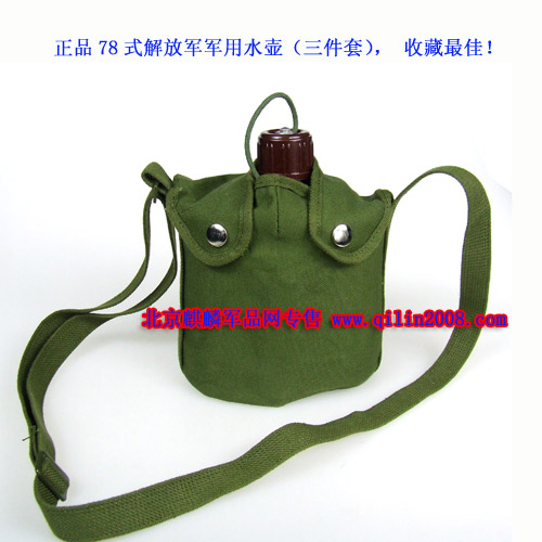 78式军用水壶,空降兵标准配置,经过严格的氧化处理,耐高温,不怕烧,不怕腐蚀。容量:1升, 10*15*19CM。此水壶也是一个组合式的饭盒,可用于野外煮食方便面等很多食物,是野营,旅游,探险,狩猎的好帮手。