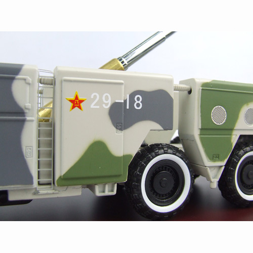 该模仿真度高,简洁精密,4个车门可打开,打开车可清晰看见仪表板,方向盘,座椅等;发射筒可以在0—90度范围内任意位置停留;打开发射筒盖,导弹自然导出;将模型从从木平台上取下,可以在台面上推动,10轮可自如转动,配底座。外形逼真,气势磅礴,极具有操作性,趣味性,是收藏和送友人最好佳品。