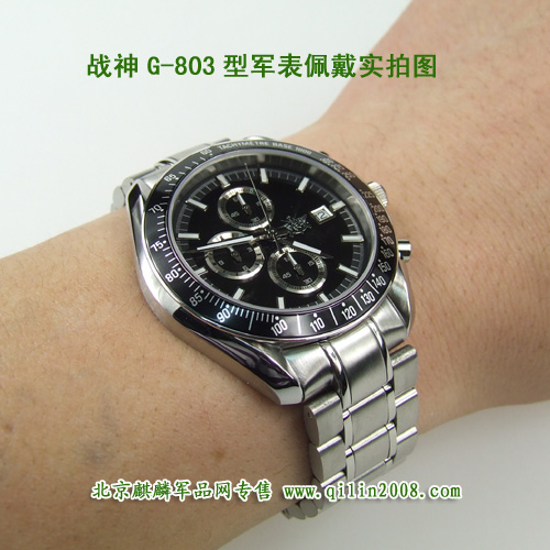 战神G-803型战术腕表是持续畅销的款式,因为表盘大,功能多而受到广大作战员欢迎。这款表的情况,大家可以看照片,对表有研究的朋友知道,45毫米的直径一般欧美手表才会达到,所以,这款表比较适合喜欢大表盘,或者身材魁梧的朋友佩戴,无论你在穿正装、休闲装的时候,G-803都是很好的配饰。 表整体呈纯黑色,不反光。