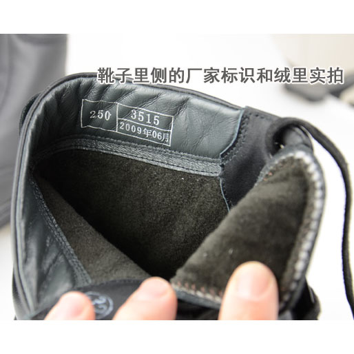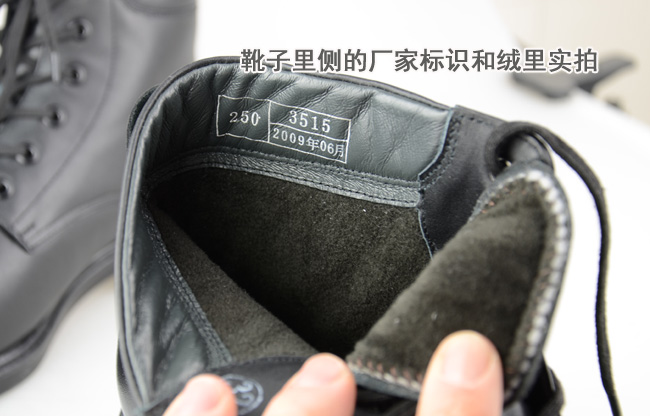 本靴分为温区靴,和寒区靴,温区的靴子里侧有2毫米长棕色绒毛,适合在冬季在办公室、室内穿着,也适合在我国中南部不太冷的地区穿着,完全可以过冬。寒区型军靴里侧有1厘米长白色绒毛,非常适合在冬季的室外穿着,适合在我国北方地区,或比较寒冷的气候下穿着,请大家自己选。如下图:
