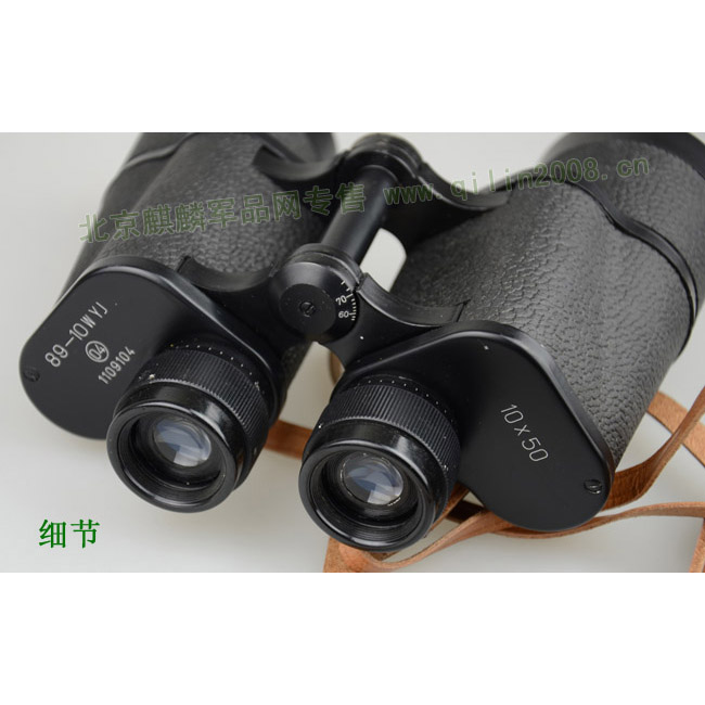 89式望远镜是密封充氮型和工程用光学观察仪器。它具有较大的出射光瞳,故不仅在白天照度下,而且在傍晚较低照度下亦可使用,尤其适用于在颠簸的船舰上或开阔地带的观察。它用于观察战场搜索和研究目标,利用右目镜筒内的分划板,还可以完成测量高底角落、方向角和概略的测量距离以及校正射击偏差等任务。此款望远镜原供部队使用。