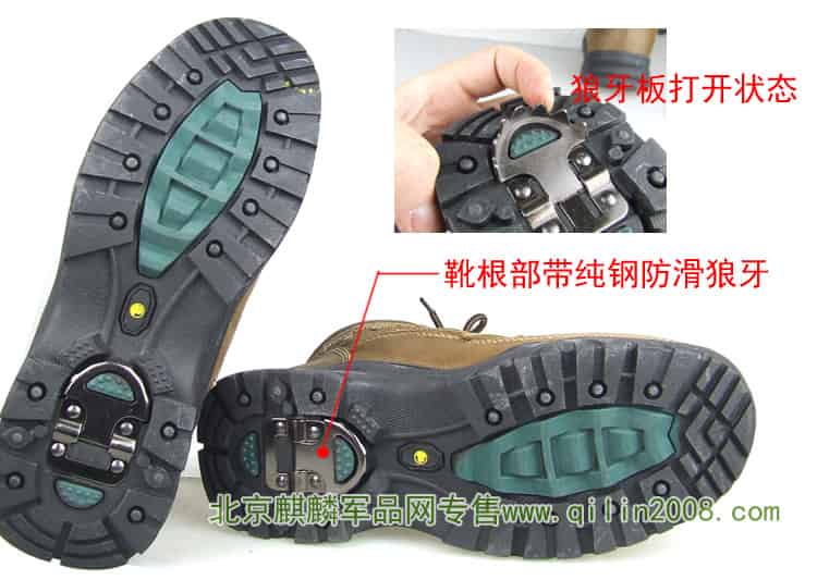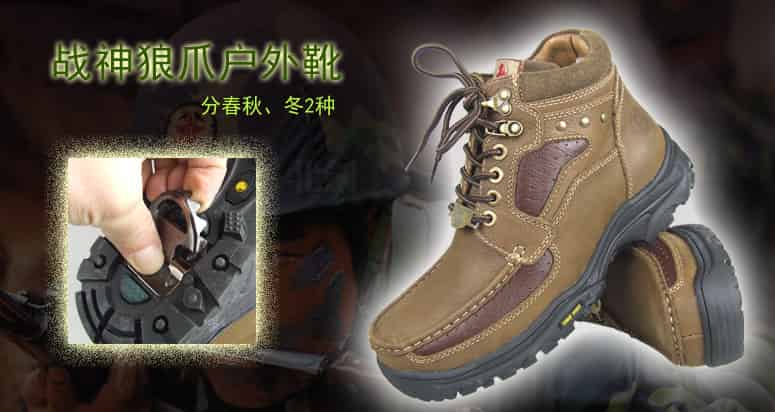 战神狼爪户外休闲鞋,产自华北地区最大的军事户外装备生产企业,本靴子主要用途适用于:登山、徒步行走,以及在雨雪天,或者冰面上最佳,因其靴子底部设计有纯金属可调式齿状防滑片,因此,大大增加它的穿着用途,备受大家欢迎。