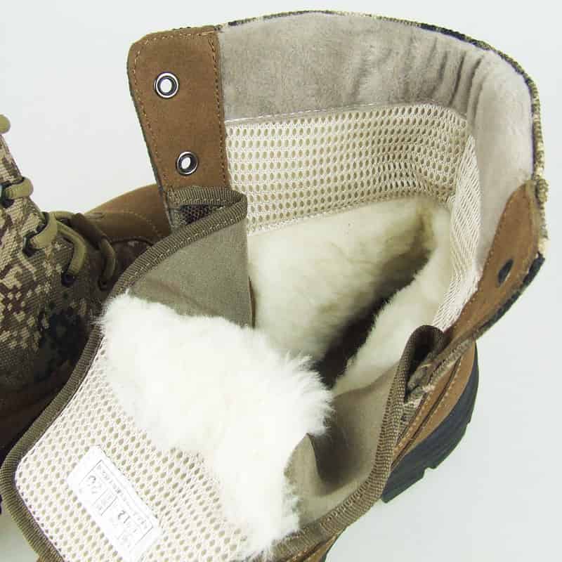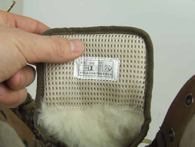 可见实拍照片的靴子里侧,1厘米长的纯羊绒清晰可见。