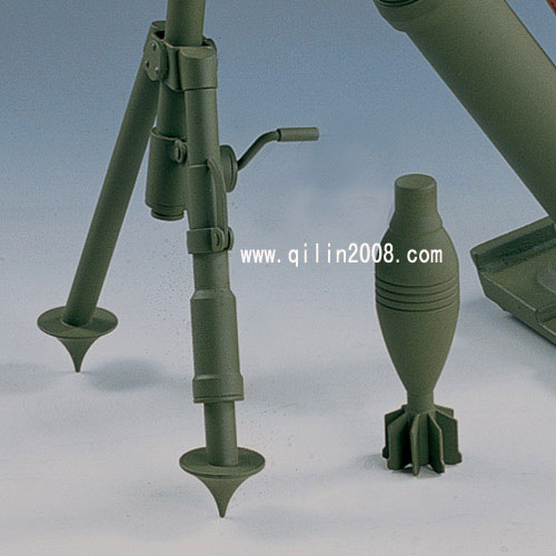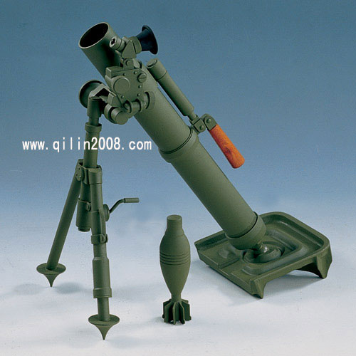 此物和原物的比例是1:2.05(一半大小),但制造的非常逼真,炮的2个支架/后座板/炮口的按狃等全是活动的,配一枚60迫击炮炮弹。全部是纯钢铁金属做的。