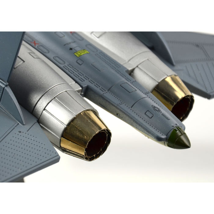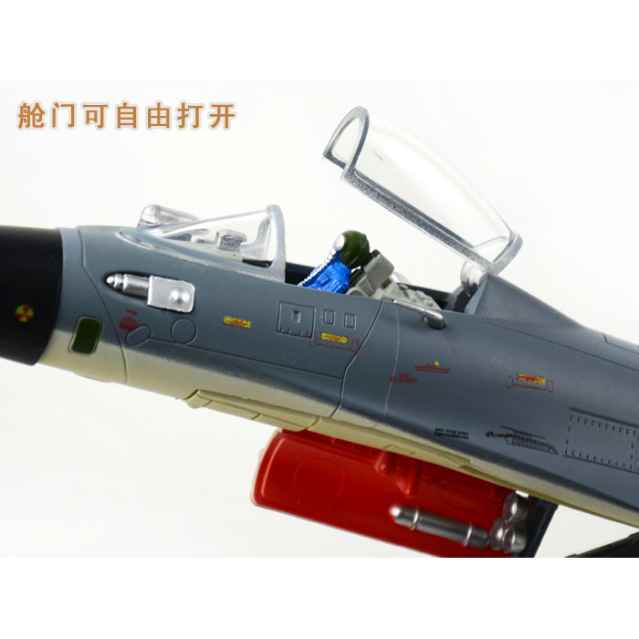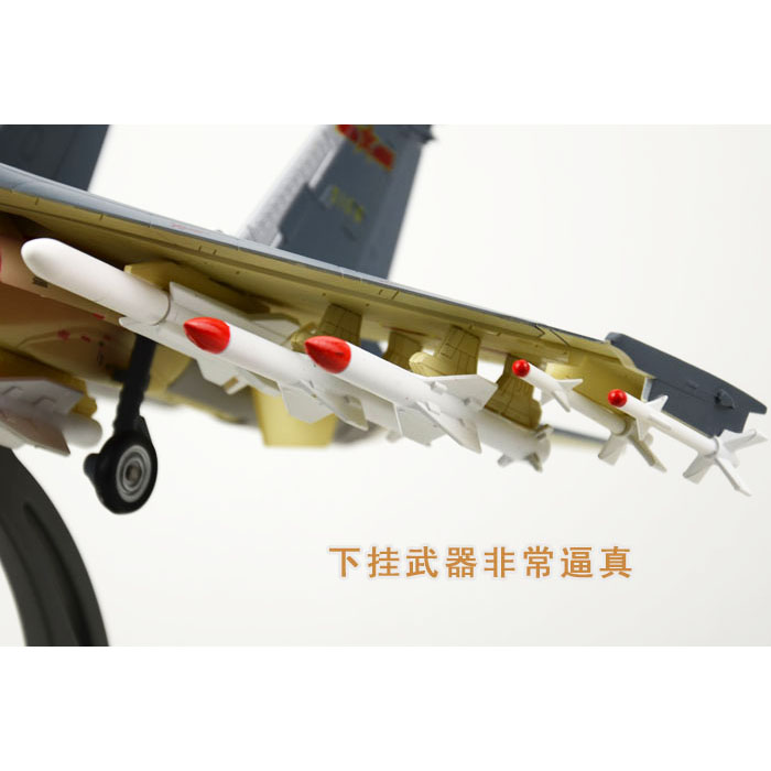 做工精细 驾驶舱 减速板可以打开,矢量喷口做成金属材质并可收缩,飞机的主翼、尾翼的前后边条翼均可活动,机轮可转动,机身喷涂均匀,各类标识元素均一一标出,飞机可在不锈钢支架是做出各种飞行姿势。