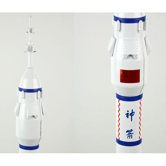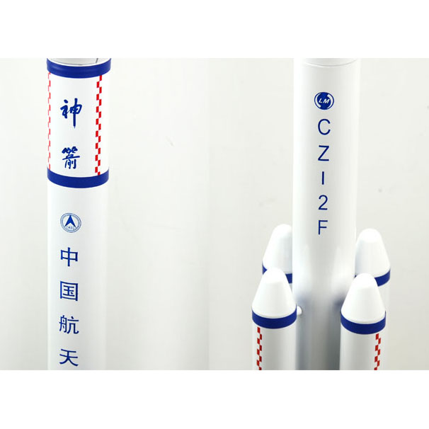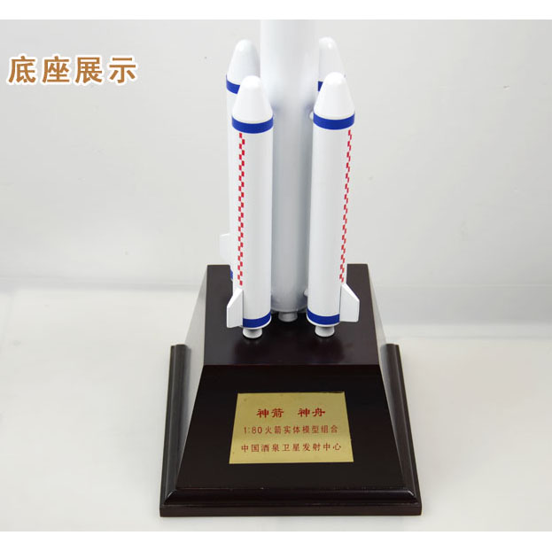 此款模型展现了绝佳的创新设计理念,将载人飞船 、天宫一号 、航天员等信息元素巧妙地结合在一起。成为一款全面反映长二F火箭骄人风采的藏品级模型,是目前中国火箭模型中的翘楚之作。可配合其他尺寸比例火箭模型,布置展览展厅。外包装为精美礼品盒。