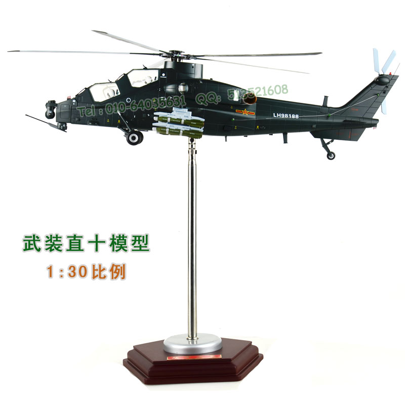武直-10直升机是中国自主开发研制的第一款专用型武装直升机,以反坦克作战为主要任务,具有优异的作战性能,技术含量高,火力强大,航电系统先进,其总体性能已达到国际先进水平。直-10计划主要由哈尔滨飞机制造总公司(HAMC)负责。WZ-10为发展自Z-9B的中型专职武装直升机,全机净重约5,543公斤。其主要任务为树梢高度战场遮断,消灭包括敌地面固定和机动的有生力量,并兼具一定的空战能力。WZ-10未来配合设有顶置瞄具的Z-11轻型直升机取得目标,可完全在接敌隐蔽处发动进攻,故战场生存能力极强。该机除部份光电瞄准系统可见于WZ-9外,更配有FLIR,因此具有有限复杂天气和夜间作战的能力。直升机全约长14.15米(旋叶转动时),高约3.84米,最宽处(注:包括短机翼)约4.35米,采国际流行的纵列式座舱布局,窄机身,后3点式防冲撞起落架;基本继承了Z-9式的涵道式尾桨和飞行传动系统。主桨由4片全复合材料桨叶构成,直径约为12米,尾桨为11片弹性玻璃纤维宽叶。采传统布局的WZ-10同美制RAH-66相比,不具备雷达隐身的气动结构,而是通过大量采用吸收雷达波长的复合材料和涂装来缩短被敌人发现的距离,同时也达到减轻飞机重量的目的。