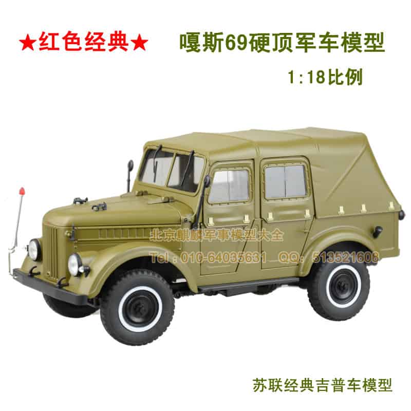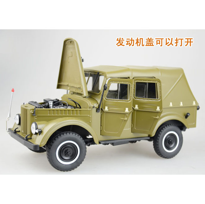 【车模介绍】发动机盖与前面两个车门可开,后备箱可开,方向盘联动,嘎斯”这个名字非常好记,其实它是来自高尔基汽车厂GAZ的缩写。嘎斯69是当时在中国保有量比较大的车型,它的前脸让人想起了什么车?没错,就是我们的解放大卡车。解放卡车其实就是仿造高尔基汽车厂的“喀秋莎”卡车而设计的,与嘎斯69算得上远亲。而嘎斯69的简洁的尾部设计,也深深地影响了后来中国的北京吉普212。