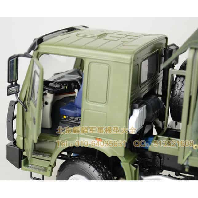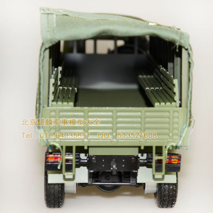 车模说明:全新原装原厂出品,帆布顶棚可拆卸,车头抬起,进风罩掀开,金属保险杠可折叠活动,左右两侧车模打开,车箱体与车头中间备胎可动,车厢可取下,帆布顶棚尾部可掀起粘住,内部长排座椅做出,底盘传动轴联动,底盘悬挂系统做出,细节体现非常到位。本款模型是国产军用卡车模型中除斯太尔之外的又一款经典力作。