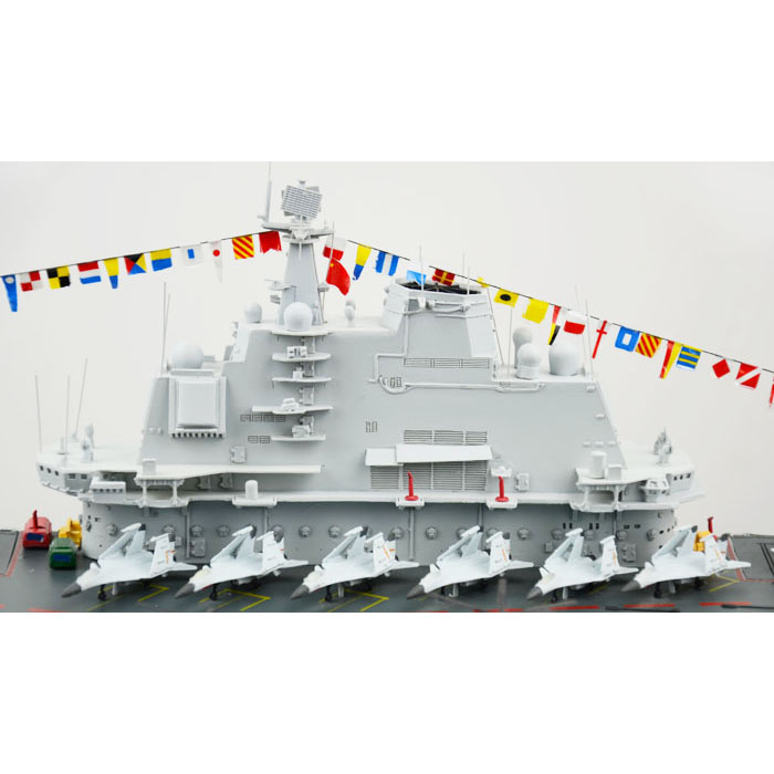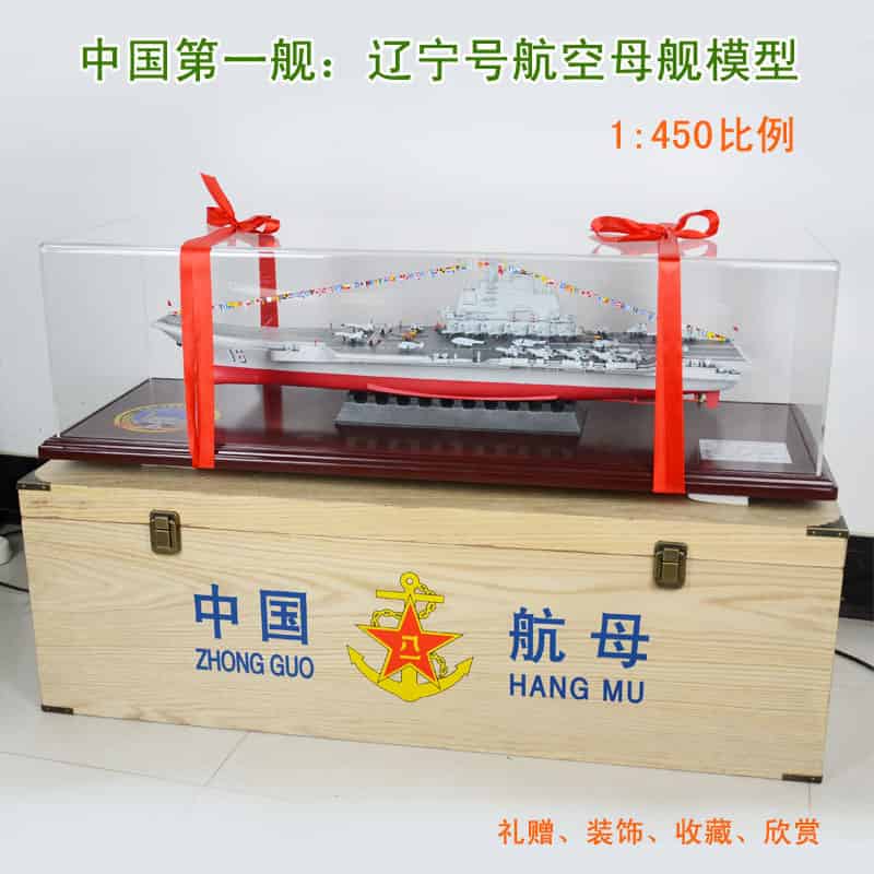 模型介绍:"中国第一舰"是以瓦良格号航空母舰为原型,采用新的模型制作工艺,以合金为主要材质辅以其它材质设计制作而成,做为海军部队指定纪念品模型市面很少见,也是现在仿真度最高的航空母舰模型之一,舰上雷达,舰载飞机,直升机,飞机起落跑道等详细刻画, 带有各国国旗,高档铝合金外箱包装,收藏,馈赠之首选模型。