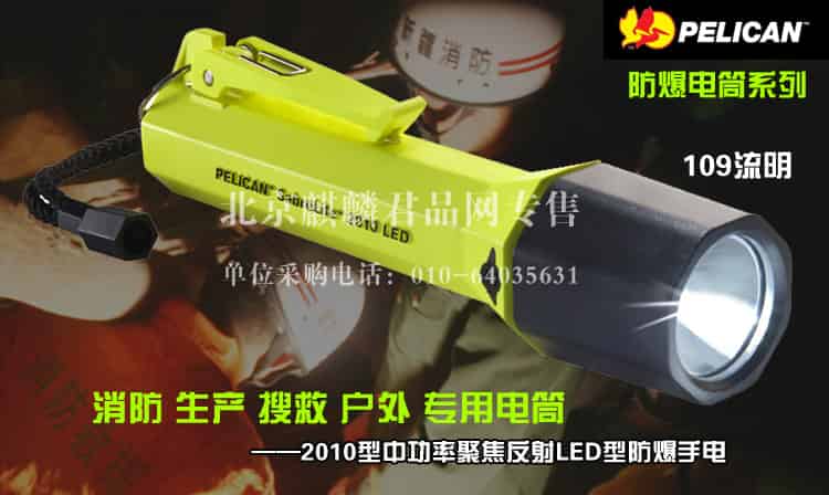 派力肯(塘鹅)2010手电筒属于派力肯(塘鹅)电筒中的手持式反向照射LED电筒,是专业的防爆电筒,获得的众多的防爆认证著称,被全球各国广泛应用于:化工厂、矿井、工厂及各种领域,2010手电筒筒身具有坚固、抗压、耐腐蚀等特性,并且。其采用反向照射LED技术使光线照射无限远依然保持平行光,LED冷光源可保持50小时连续照射。美国PELICAN派力肯(塘鹅)2010手电筒是世界上最完美的防爆防水照明工具。