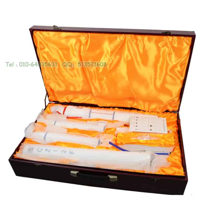 此款模型展现了绝佳的创新设计理念,将载人飞船 、天宫一号 、航天员等信息元素巧妙地结合在一起。成为一款全面反映长二F火箭骄人风采的藏品级模型,是目前中国火箭模型中的翘楚之作。可配合其他尺寸比例火箭模型,布置展览展厅。外包装为精美礼品盒。