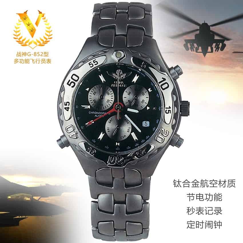 战神G-852型钛合金表,三眼计时多工能显示手表